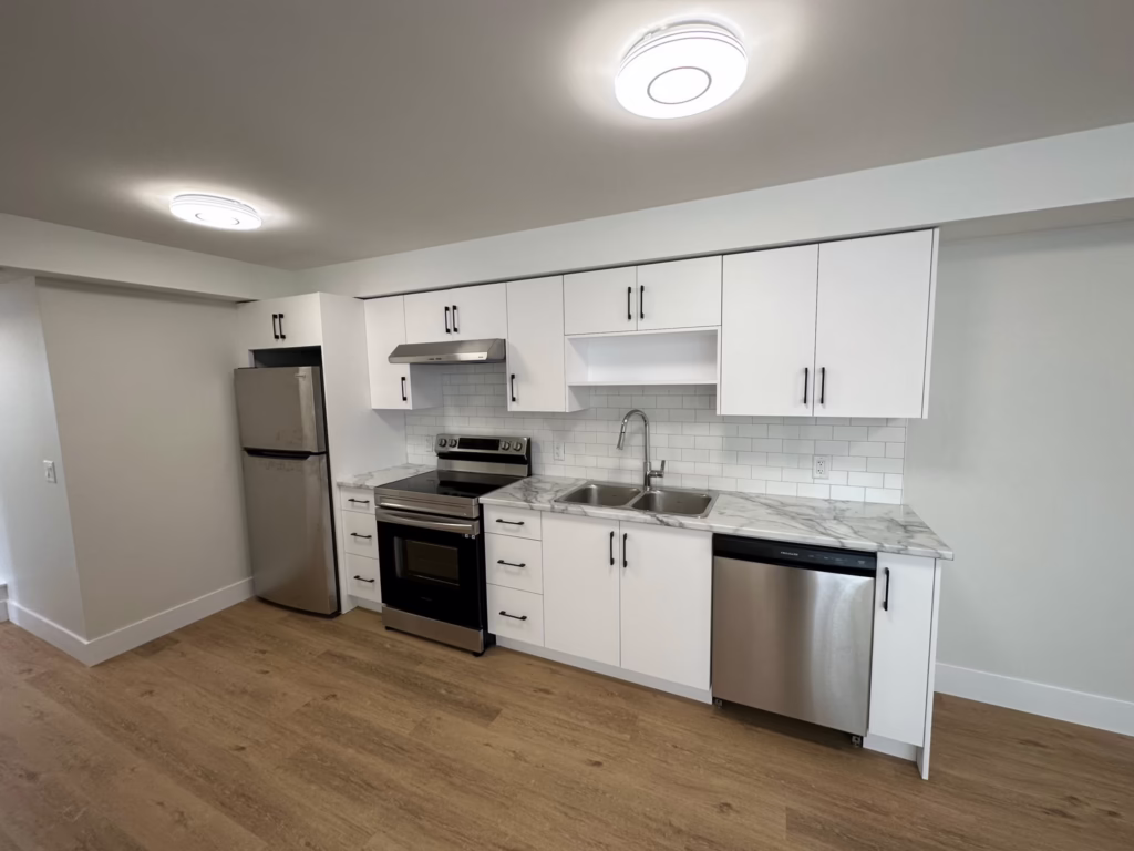 Rent is $2,500 per month and includes water and parking spaces. Tenants are responsible for power, which covers electricity, heating, cooling, and hot water; as well as tenant insurance. The energy efficient new construction helps your escape high utility bills while keeping you comfortable year-round.