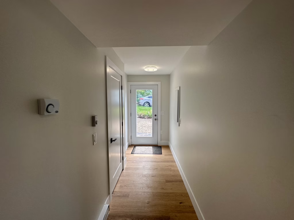 Outside, the asphalt driveway provides dedicated parking and easy access to garbage, compost, and recycling.
