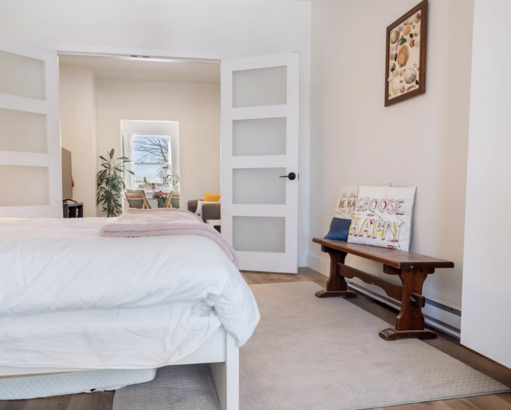 Outside, the asphalt driveway provides three dedicated parking spots and easy access to garbage, compost, and recycling disposal.