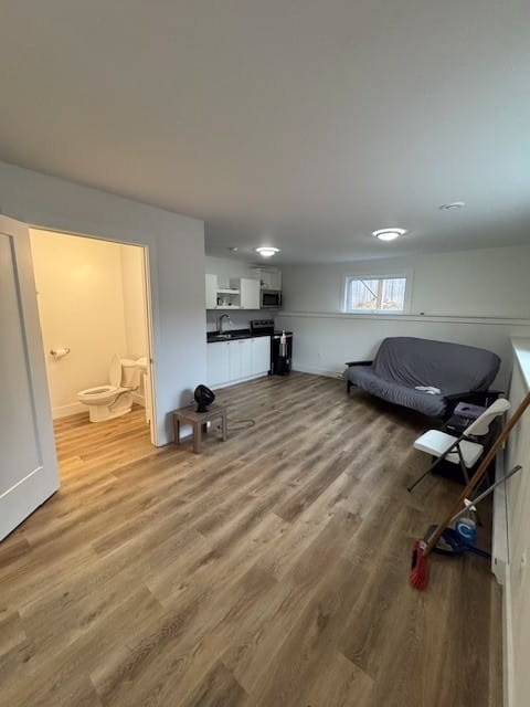 The lower level features a brand new bathroom, new flooring with in-floor heating, excellent ceiling height, and a newly installed kitchenette, allowing it to function as flexible living space or an in-law suite,