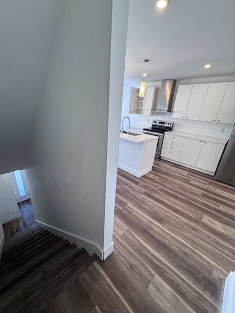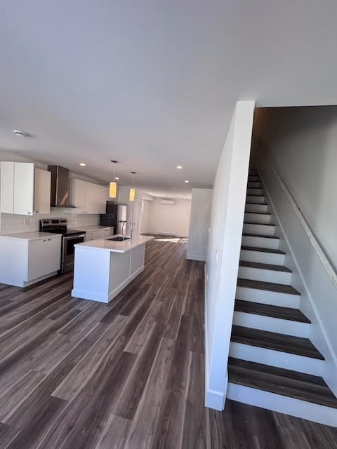 Walk up the stairs from the entrance and find yourself in the open-concept kitchen and living room that’s perfect for entertaining and comfortable day-to-day living.