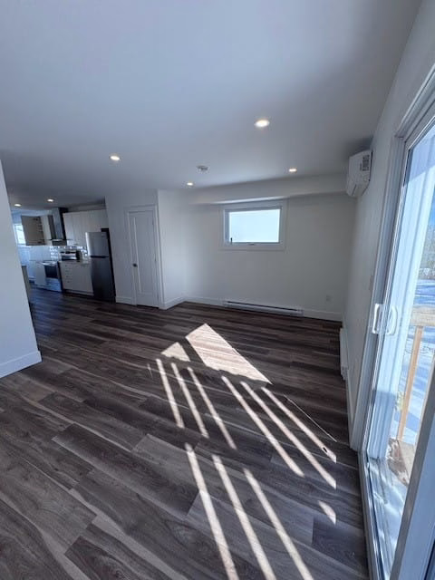 The unit features a Large living room, large windows allowing for lots of natural light , an incredible kitchen with quartz countertops, large island, stainless-steel appliances and an energy efficient heat pump , not to mention 2 full 3 piece bathrooms and a 1/2 bath as well ! ! on the main level you have a large open concept Living room, kitchen and dining room , complete with 4 full size appliances ( fridge , stove , microwave & dishwasher ) + a heat pump to keep you comfortable on those hot summer days , or cool winter nights !